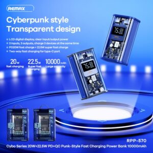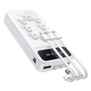باور بانك بسعة 30 الف مللي أمبير يتميز بمصباحين ليد قويه و يتميز بمنفذين يو اس بي للشحن مع 4 كيبلات مبنية مايكرو و تايب سي و لايتننك و يو اس بي